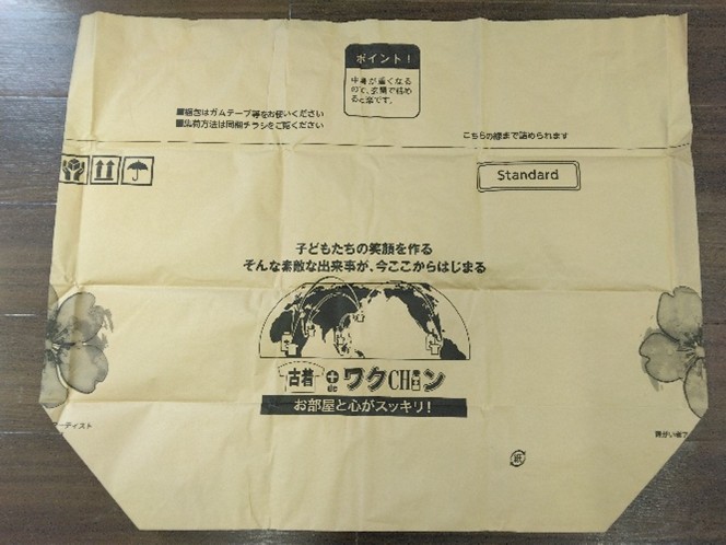 専用の袋(約120着)に衣類を詰めて発送し、この取り組みによりワクチン5本分の寄付につながります。