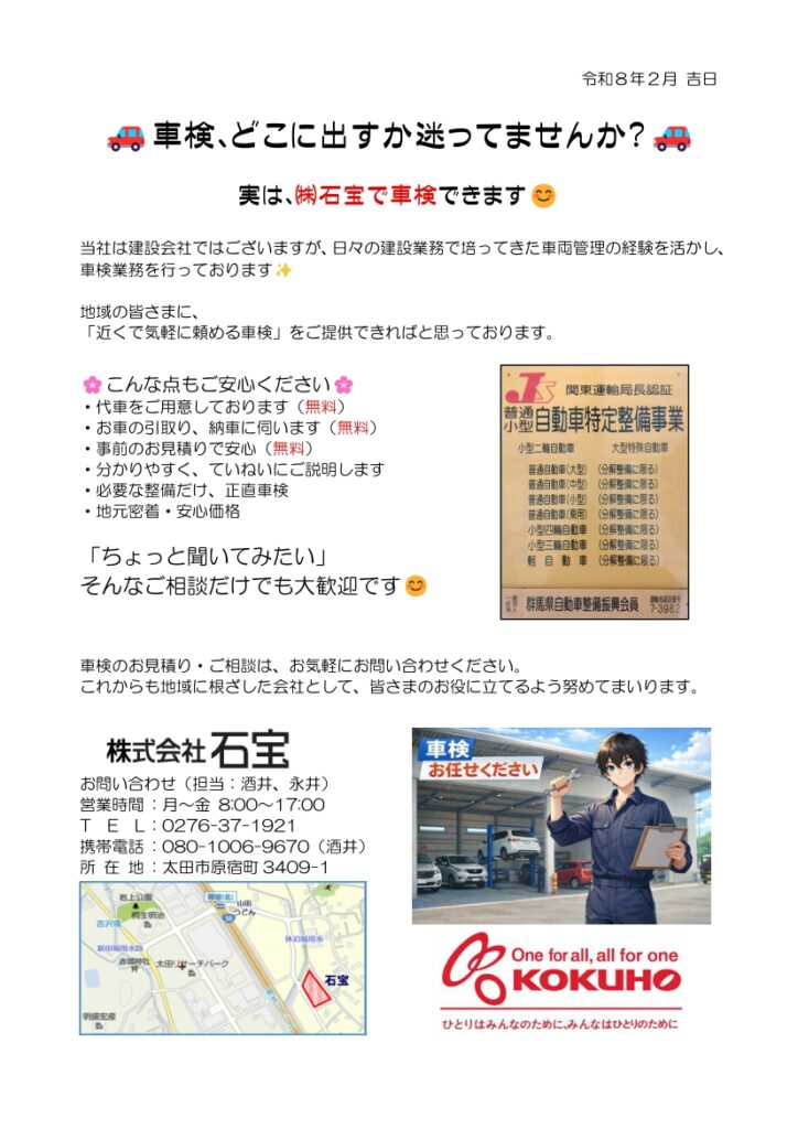 当社は建設業を主軸としながら、車検・自動車整備事業も行っております。